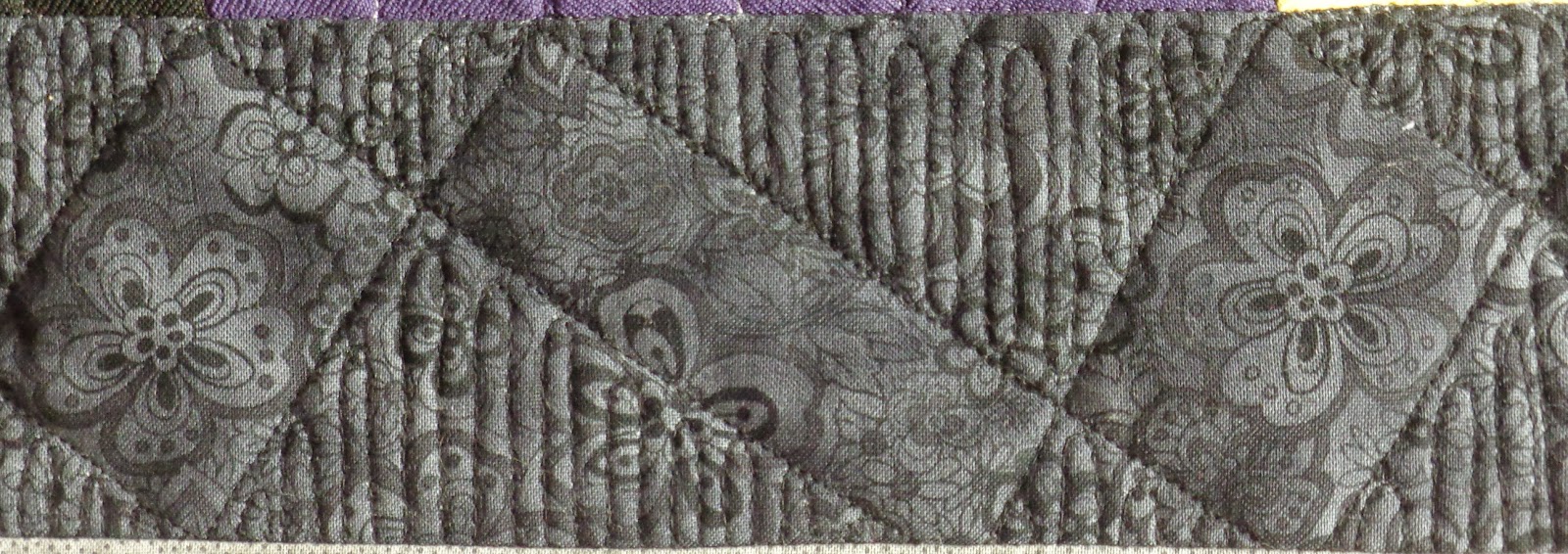 Close up of daisy fabric. I outlined all the purple daisies with a meander to connect them: